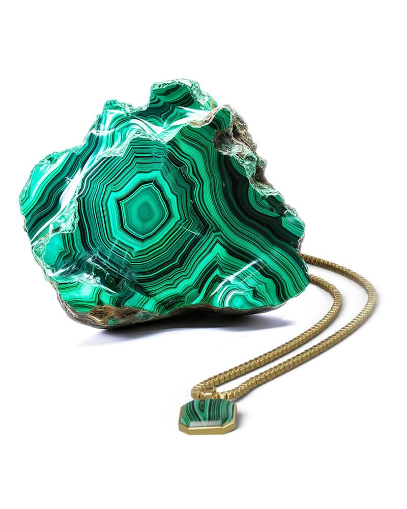 Malachit, mit seinen lebendigen grünen Schattierungen, ist ein Stein der Veränderung und des Wachstums. Er bringt emotionales Gleichgewicht und öffnet das Herz für neue Erfahrungen.