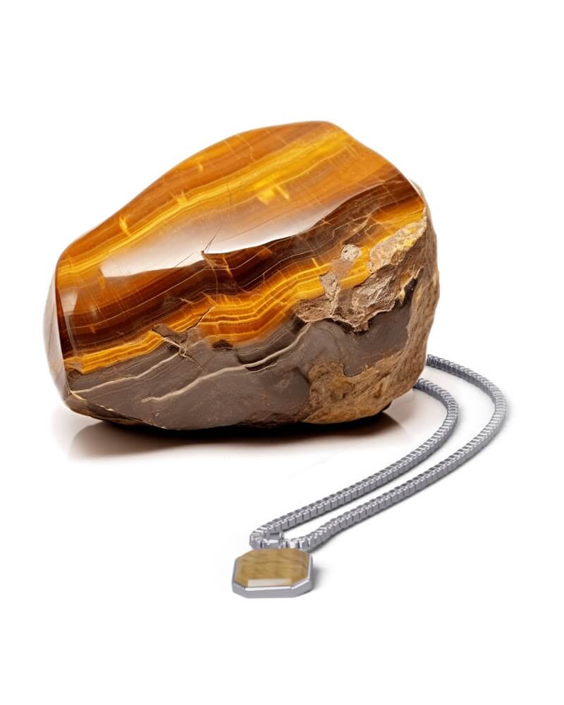 Das Tigerauge, bekannt für seine faszinierenden goldbraunen Muster, symbolisiert Mut und Entschlossenheit. Es steht für Schutz und klare Sicht, ein Edelstein, der die innere Stärke und Weisheit seines Trägers hervorhebt.
