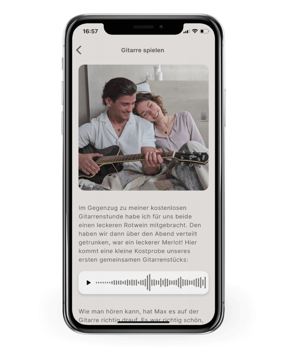 Halte Momente direkt während du sie erlebst als Sprachnachricht fest und spiele sie immer wieder ab um dich ganz genau daran zu erinnern. Gänsehaut-Momente garantiert!