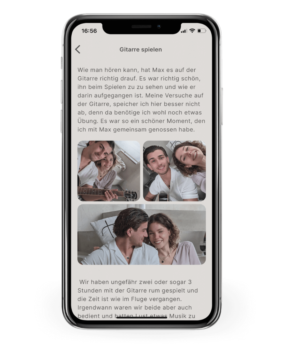 Nutze Text und Bilder um deine Erinnerungen so genau wie möglich festzuhalten. Was hast du erlebt? Wofür bist du dankbar? was macht diese Erinnerung so besonders? Halte es für immer fest.