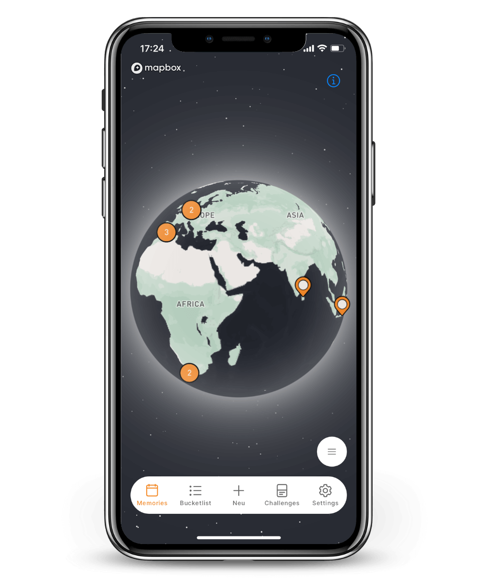 Auf einer interaktiven 3D-Weltkate kannst du Stecknadeln an genau die Orte setzen, an denen du Erinnerungen hast. Das perfekte Reisetagebuch!