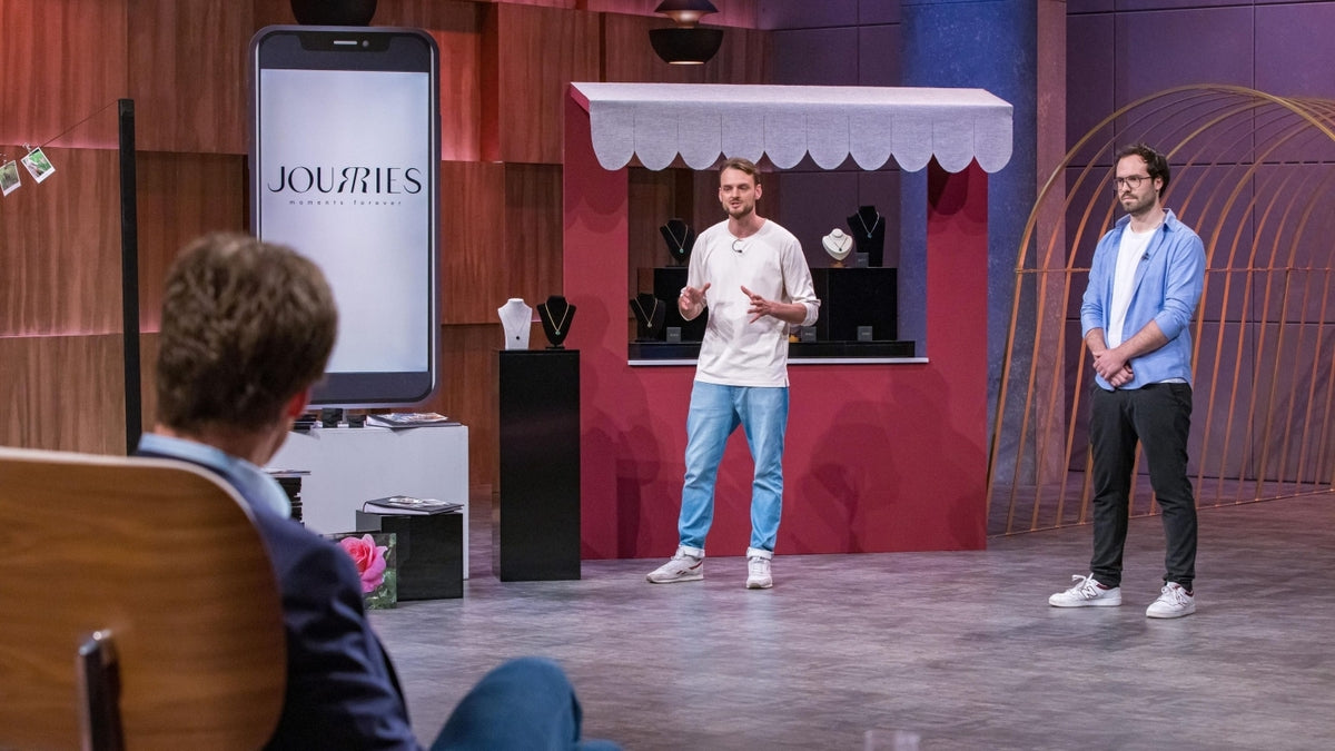 In dieser präsentieren unter anderem Moritz Tschischkale und Henrik Hühn ihre Smart Jewelry-MarkeJourries.Ihre Idee: Paaren, Familien und Freunden dabei helfen,ihre Bindung zu stärken– und zwar durch Schmuck, mit dem manbesondere Erinnerungenfesthalten und immer bei sich tragen kann...
