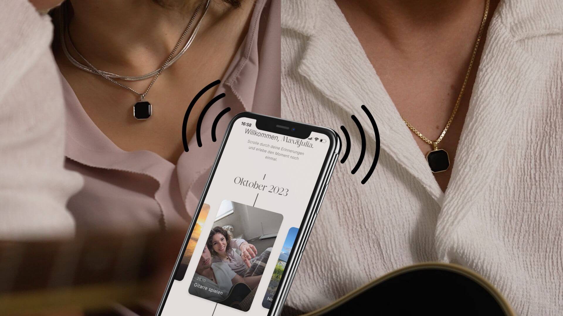 Ihr habt nun einen Aufbewahrungsort für die wichtigen Momente. Ein sanftes Berühren des Schmuckstücks mit dem Smartphone lässt alle Erinnerungen aufleben – ein magisches Erlebnis, das euch auch in vielen Jahren noch verbindet.