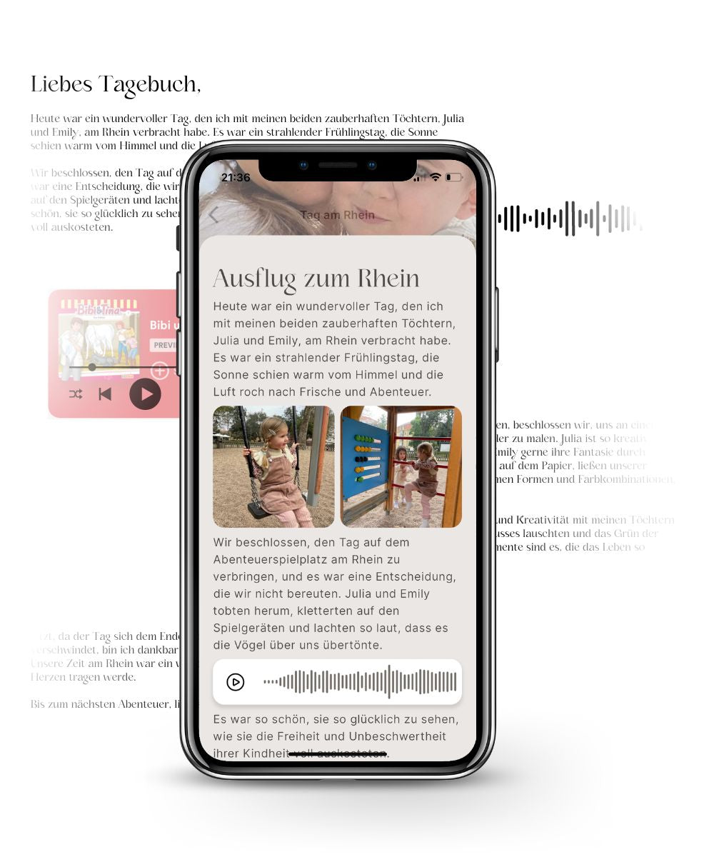 Jeder Moment ist einzigartig! Mit dem Tagebuch Format können diese Momente auf ganz individuelle Weise verewigt werden: Text, Voice, Songs, Bilder & mehr...